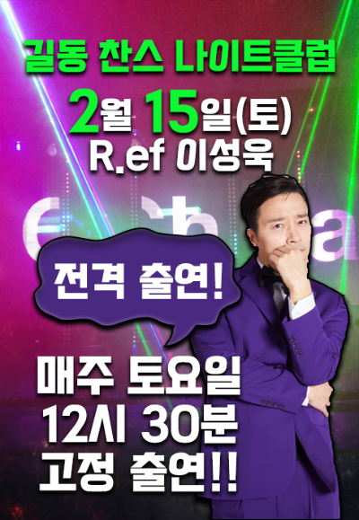 매주 토요일 12시 30분 90년대 최고의 인기 그룹 R.ef의 이성님이 고정 출연합니다.